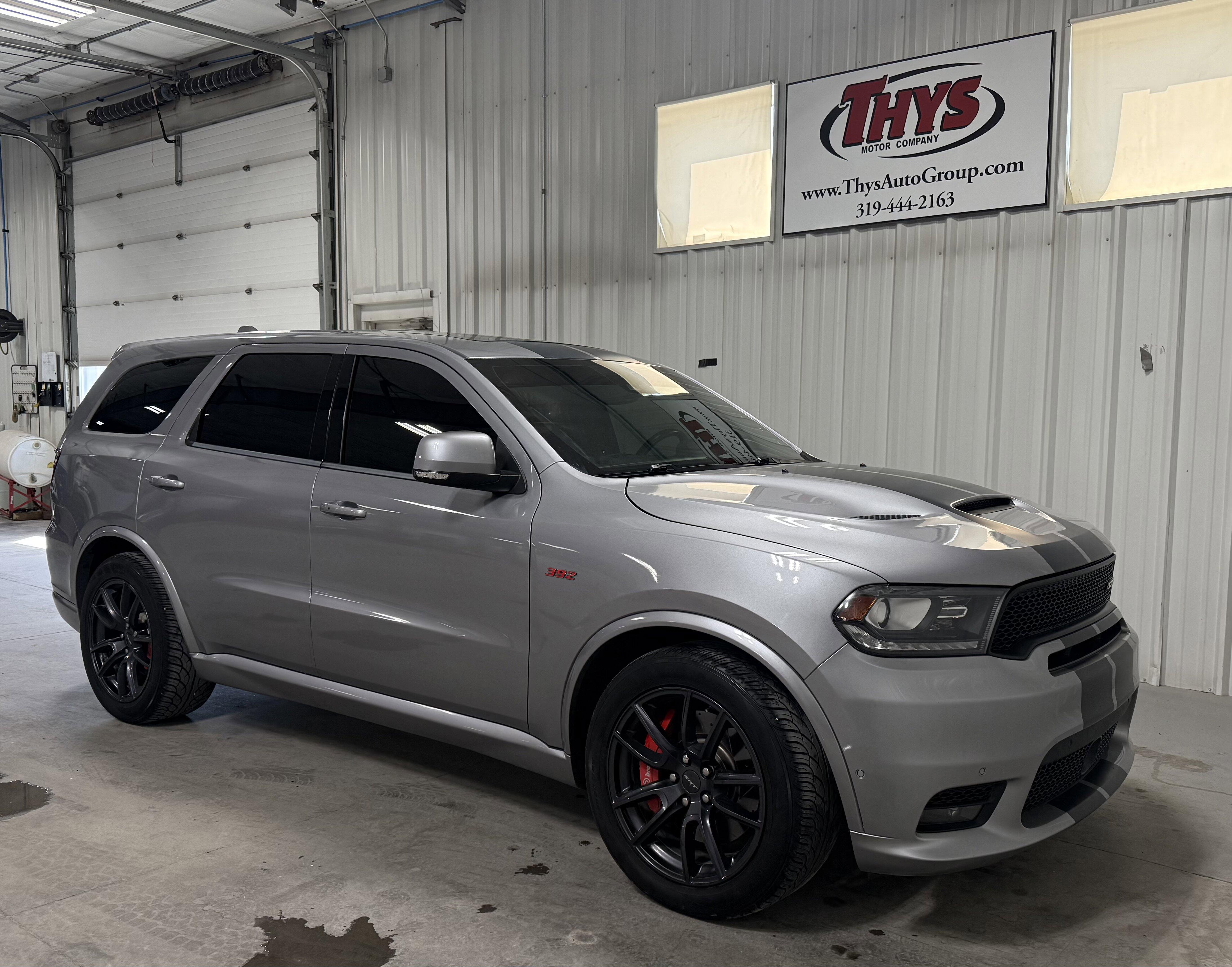 This Durango SRT comes with the 392 V8 with raw horsepower & torque. It has the fulltow package with the class 4 hitch platform, 7 and 4 pin wiring and load leveling shocks.Can tow up to 8,200 lbs. Great for campers, boats or small horse trailers.SRT interior group with the carbon fiber accents, leather suede front bucket seats that areheated and ventilated. Second row captain seats that are heated as well. Heated steeringwheel, 8 way power seats driver and passenger. 8.4 Uconnect touch screen with factornavigation, back up camera and blue tooth phone. Silver metallic paint with flat blackdual racing stripes. So many things to list, so call or stop by the Belle Plaine location319-444-2163